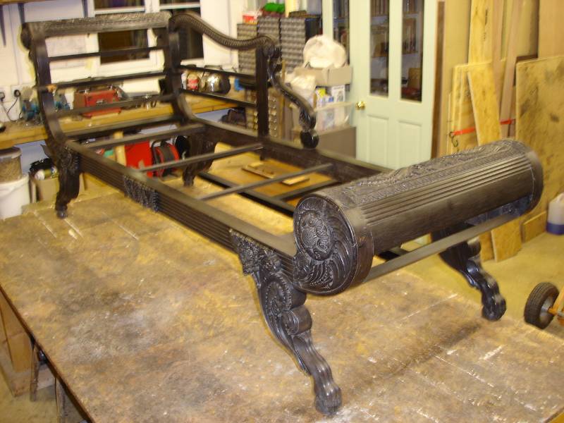 Description of restoration process, the day bed was in considerable disrepair, at some point a previous upholsterer had removed rails, tacked into the rails, added pine blocks, removed the original cane seat, so all these areas had to be reinstated, I contacted experts in the field including Amin Jaeffer, the head of the Sri Lankas museum, they all agreed with my repair schedule, the item finally sold at Chrisites to a New York dealer.